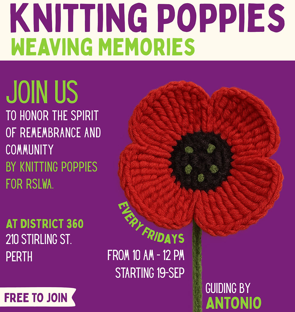 🧶Starting 19 September, our doors are open every Friday for a gentle morning of knitting, sharing, and remembrance with RSLWA.